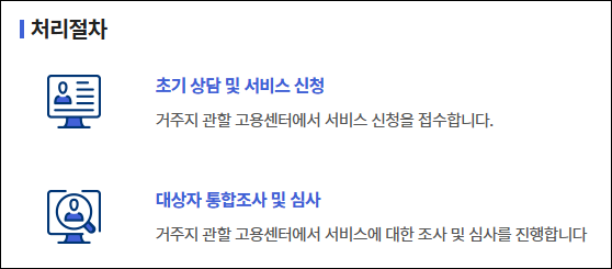 2유형은 1유형에 비해 신청 문턱이 낮은 유형으로, 금전 지원보다는 취업 지원 서비스에 초점을 둔 구조입니다.