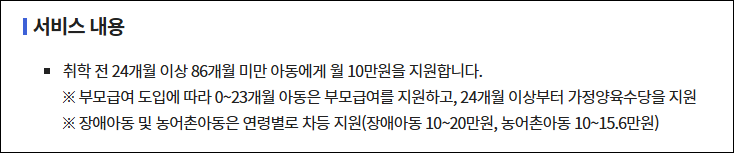 💸 양육수당 급여 내용과 금액