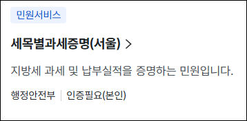 • 한 번의 신청으로 서울과 다른 지방자치단체의 과세 내역을 한꺼번에 발급할 수 없는 경우가 있으므로, 필요한 경우 별도 발급이 필요할 수 있습니다.